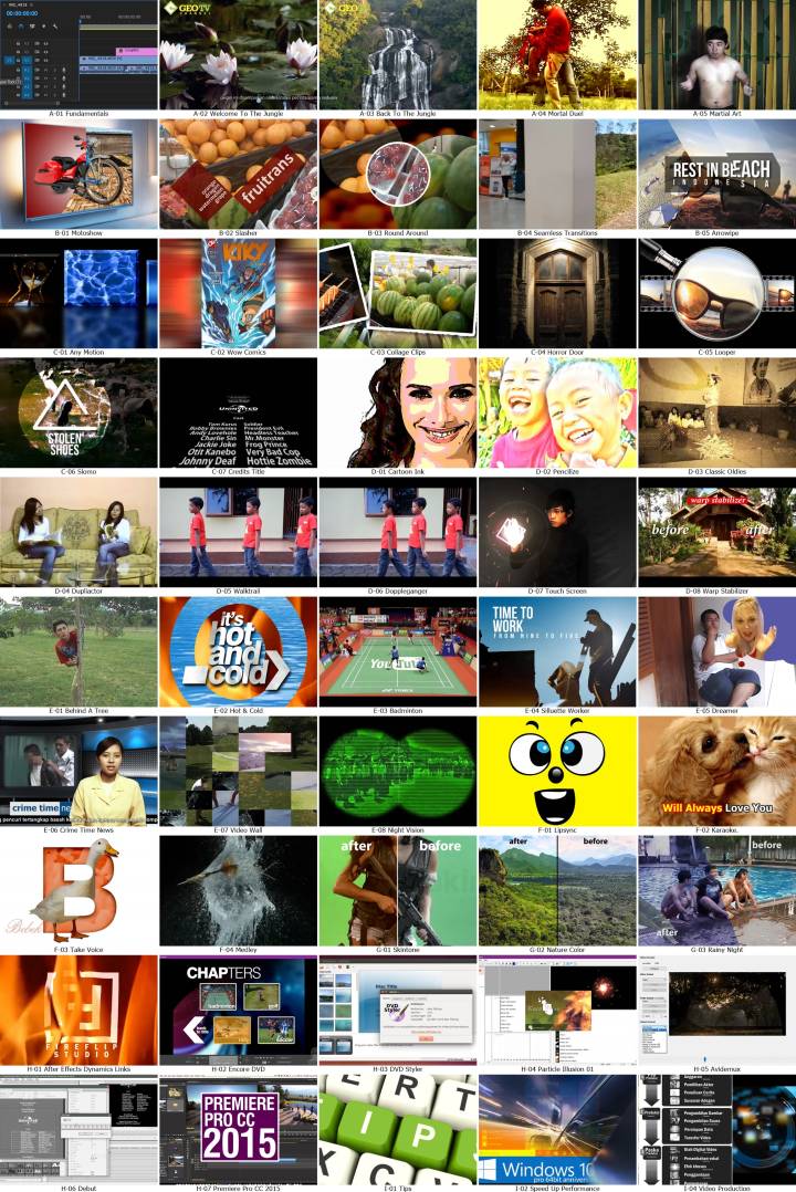 Tutorial dibuat menggunakan Adobe Premiere Pro CS6 dan CC 2015 sehingga bisa dipraktekkan di versi lebih tinggi (CC 2017 dst). Disertai DVD 4GB yang berisi ratusan Video Tutorial (*.mp4), Software Adobe Premiere Pro CS6 Trial dan puluhan freeware & shareware. |